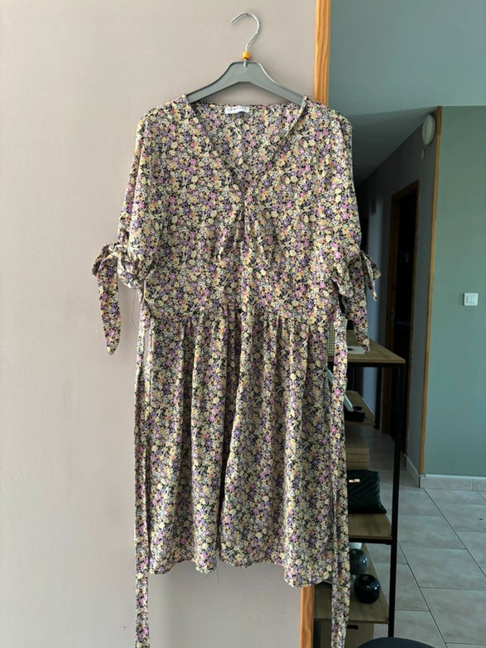 Robe à manches courtes fluide avec noeuds À fleurs pastels Loavies taille L En très bon état