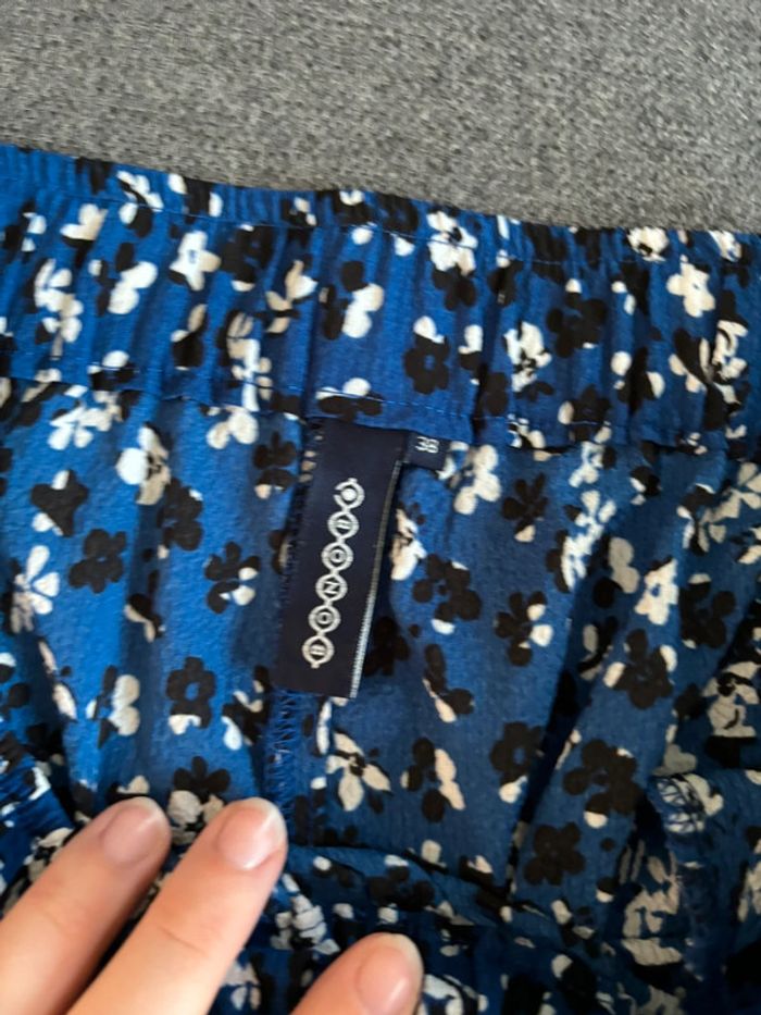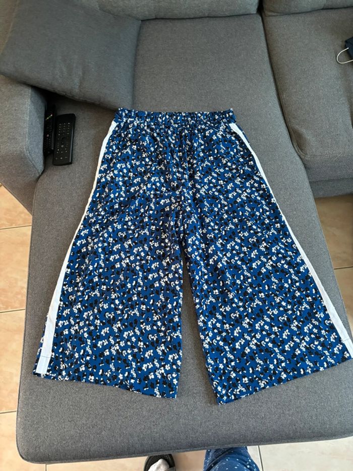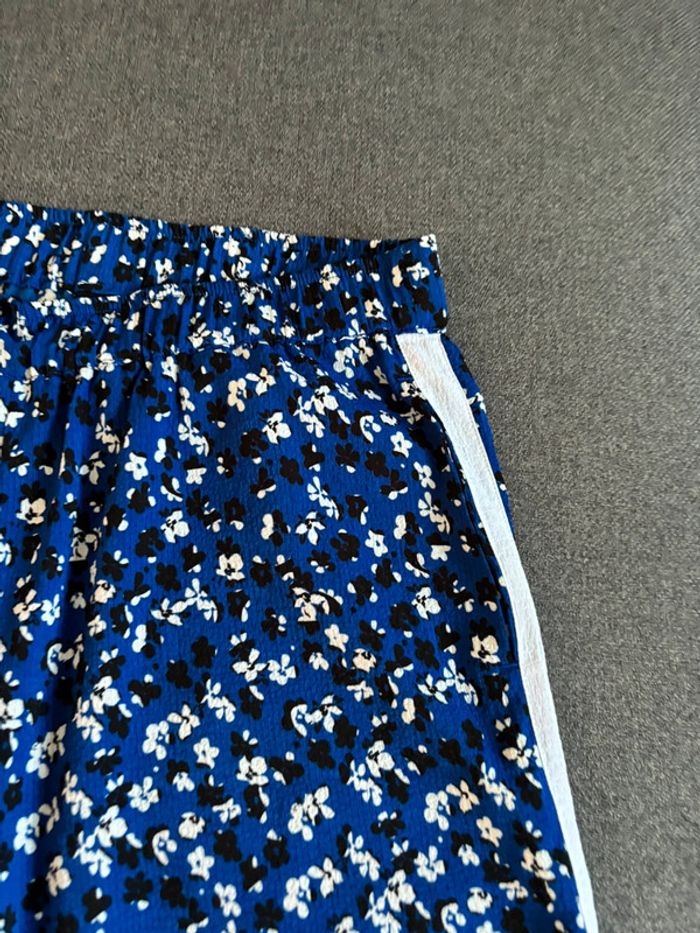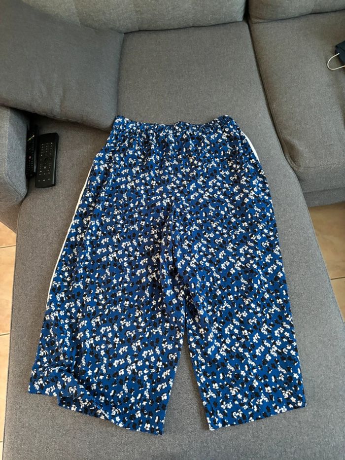 Pantacourt large bleu à fleurs noires et blanches avec bandes Bonobo taille 38 En très bon état