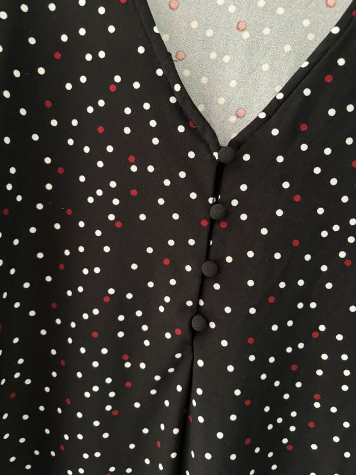 Robe droite à manches longues col V noir avec pois bordeaux et blancs - photo numéro 2