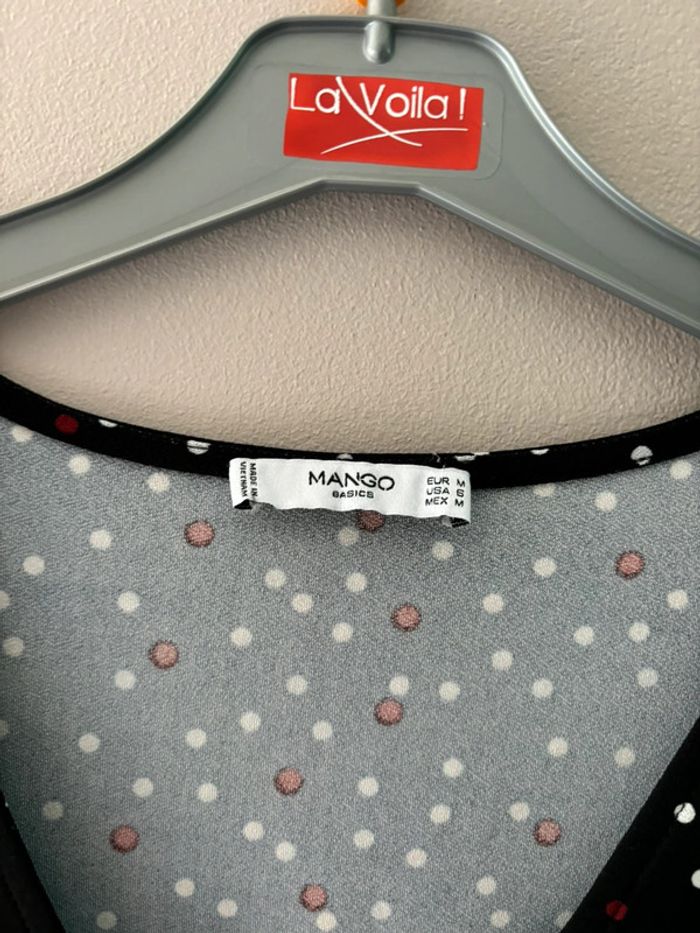 Robe droite à manches longues col V noir avec pois bordeaux et blancs MANGO taille m En très bon état