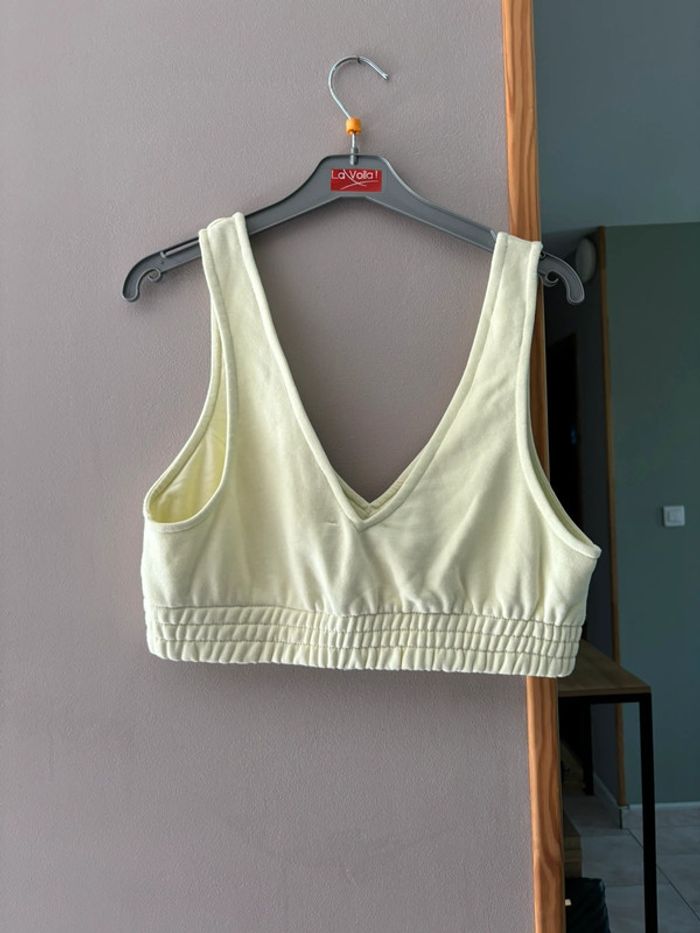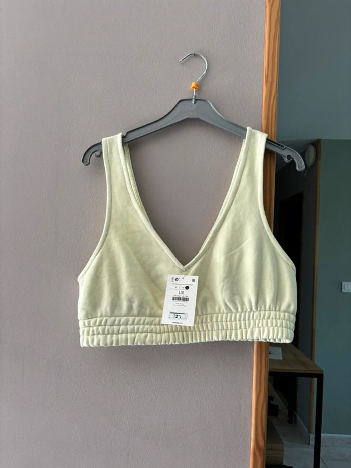 Crop top brassière jaune décolleté V avant et arrière Bershka taille L Neuve avec étiquette