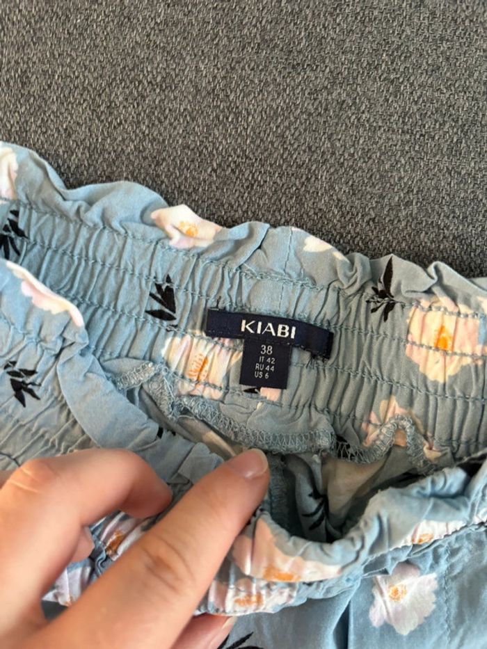 Pantalon large 7/8e bleu clair fleuri Kiabi. Taille 38 En très bon état