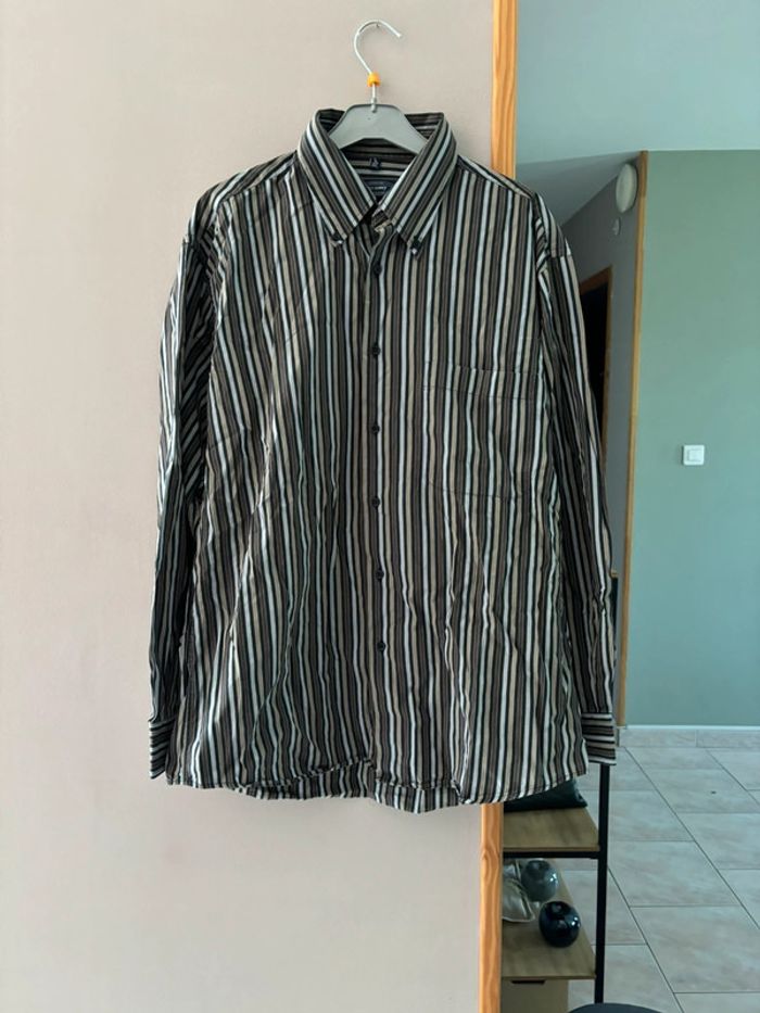 Chemise rayée noir marron et blanche - photo numéro 1