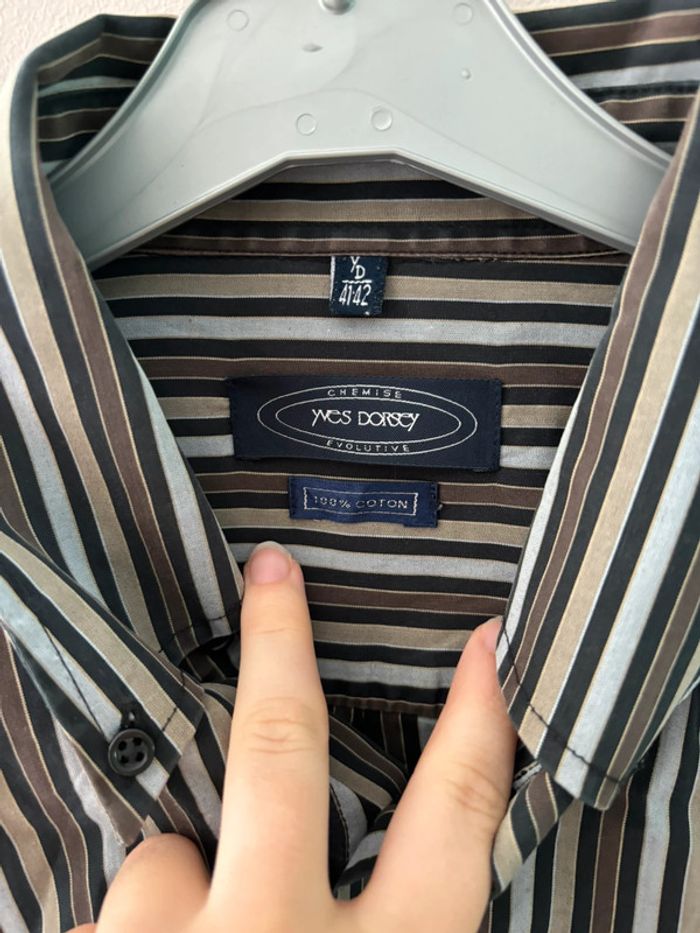 Chemise rayée noir marron et blanche Yves dorsey taille L En très bon état