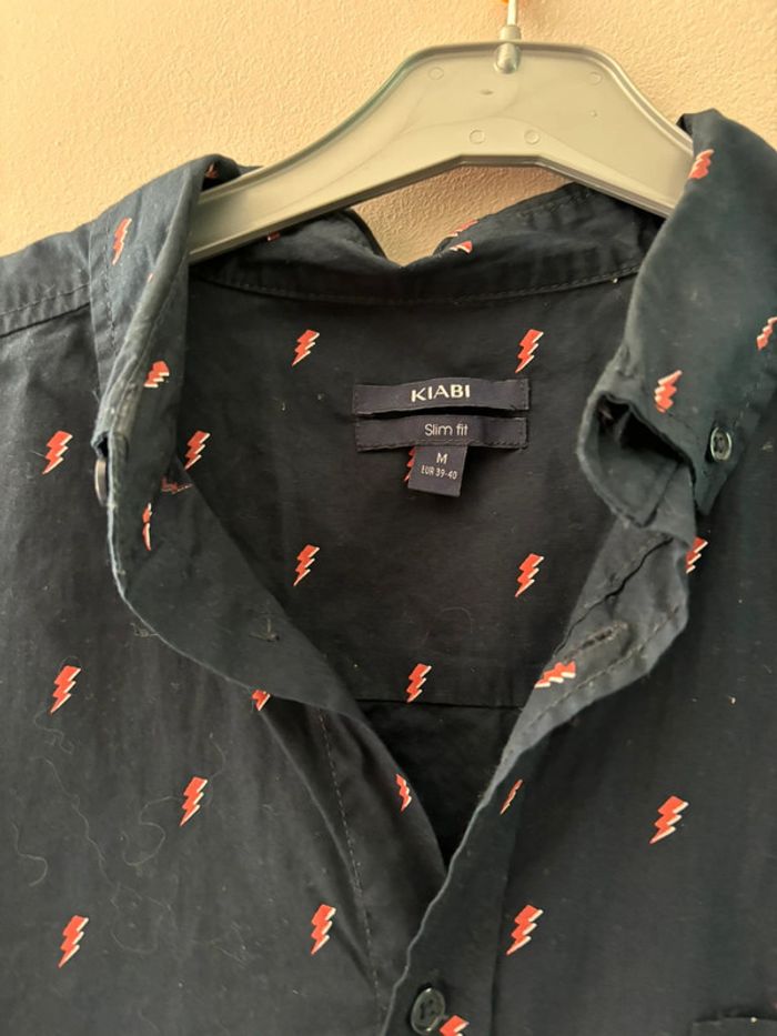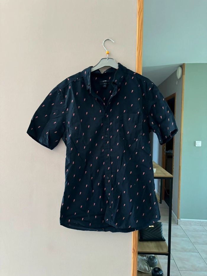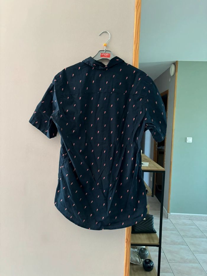 Chemise à manches courtes bleu marine motifs éclairs rouges Taille m Kiabi En très bon état
