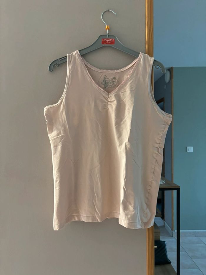 Débardeur col V rose pale Taille 44 En très bon état