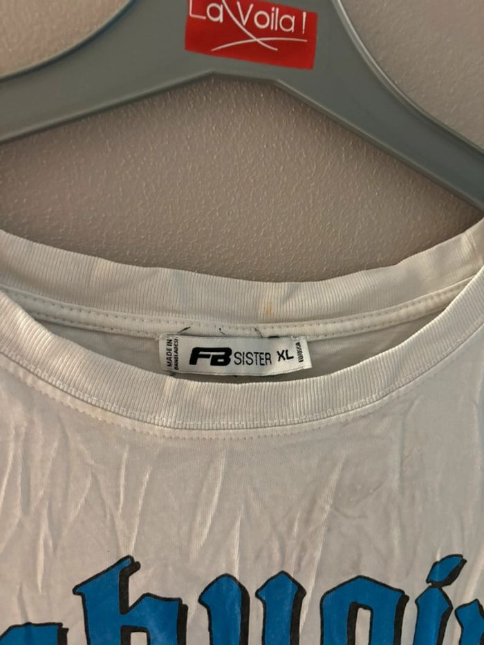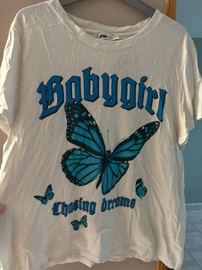 T shirt blanc motif papillon bleu FB sister taille XL En très bon état