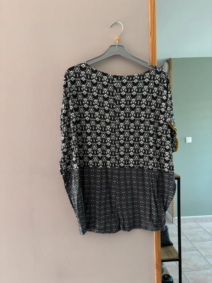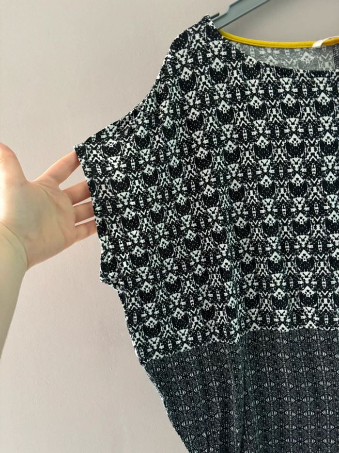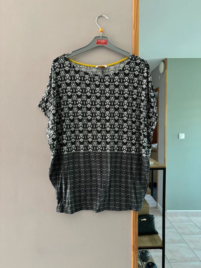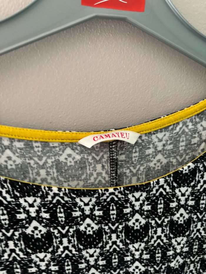 T shirt à motifs blancs et noirs à motifs avec liserés jaunes Camaieu taille 42 En très bon état