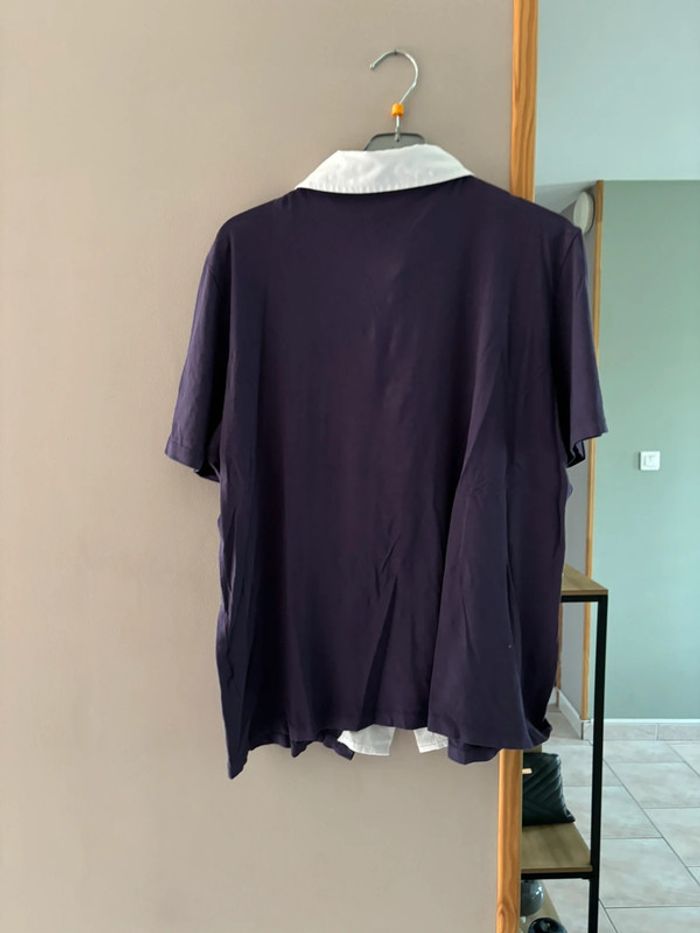 Haut vintage à manches courtes violet et blanc - photo numéro 3