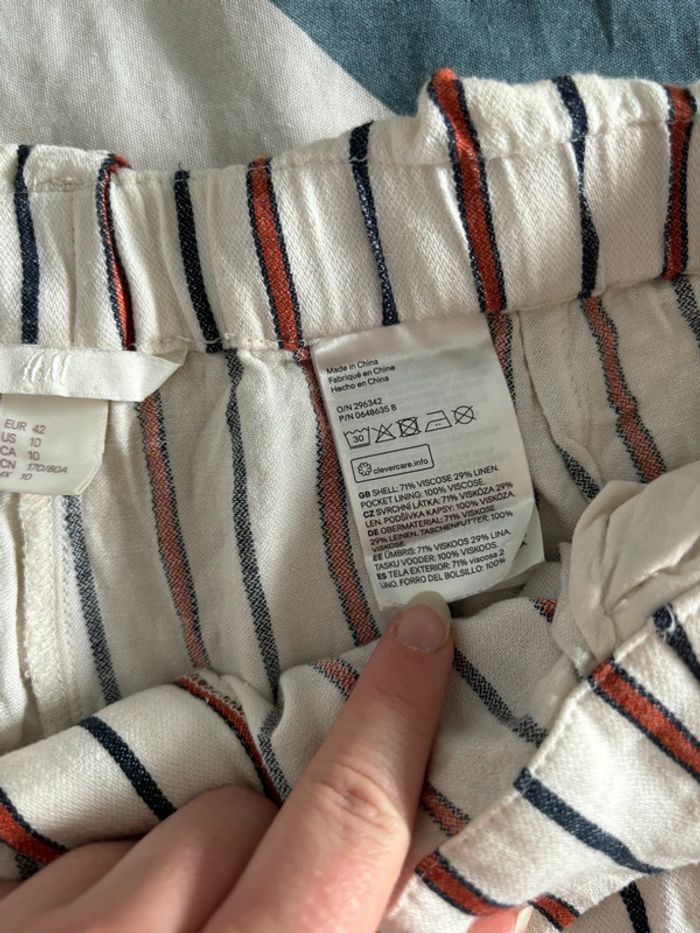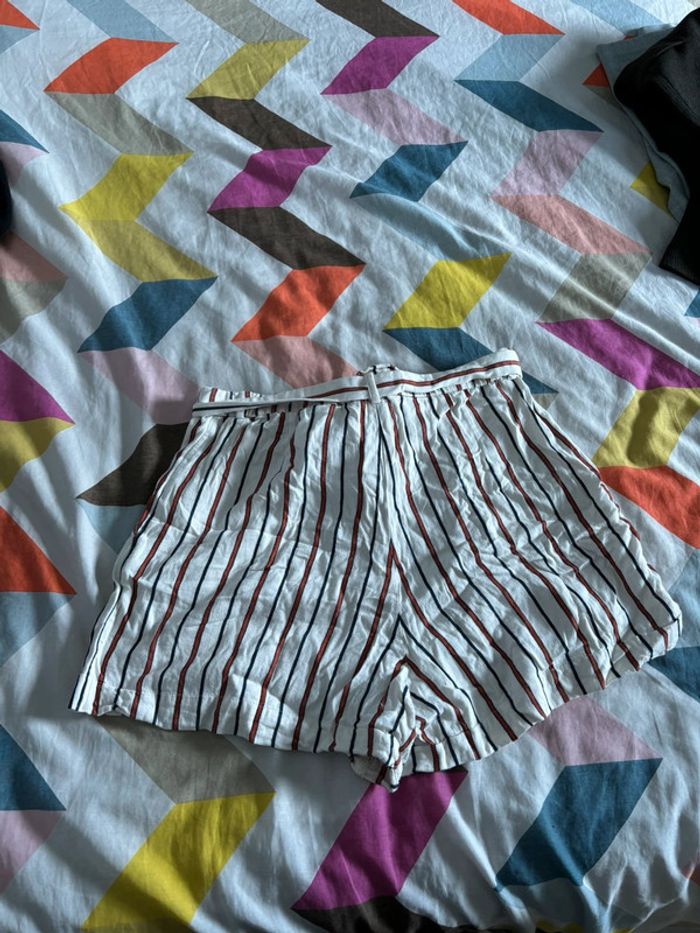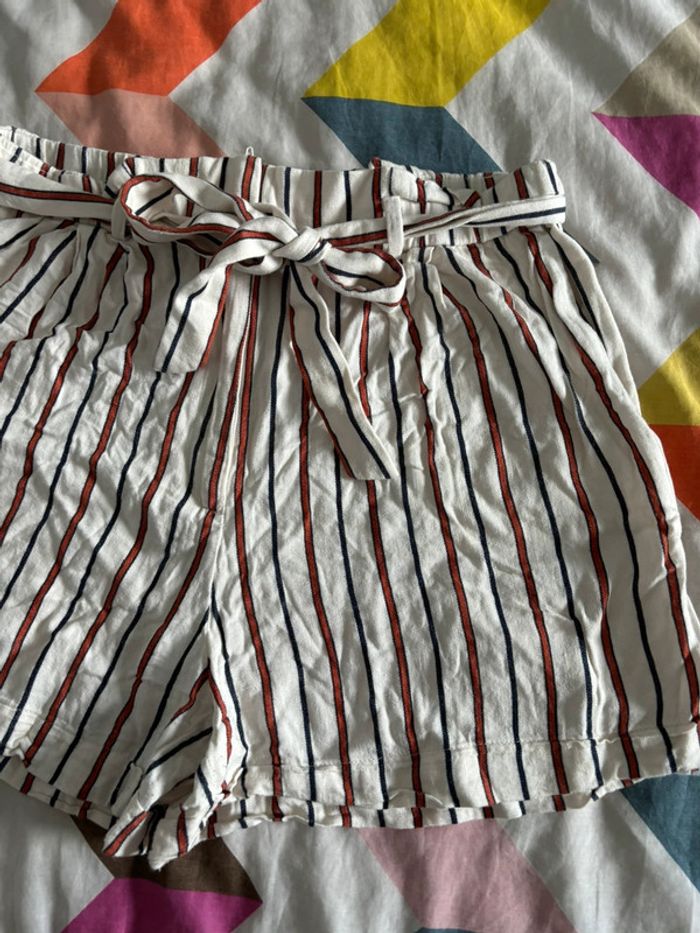 Short ample blanc à rayures verticales bordeaux et marines À nouer H&M taille 42 En très bon état Viscose et lin