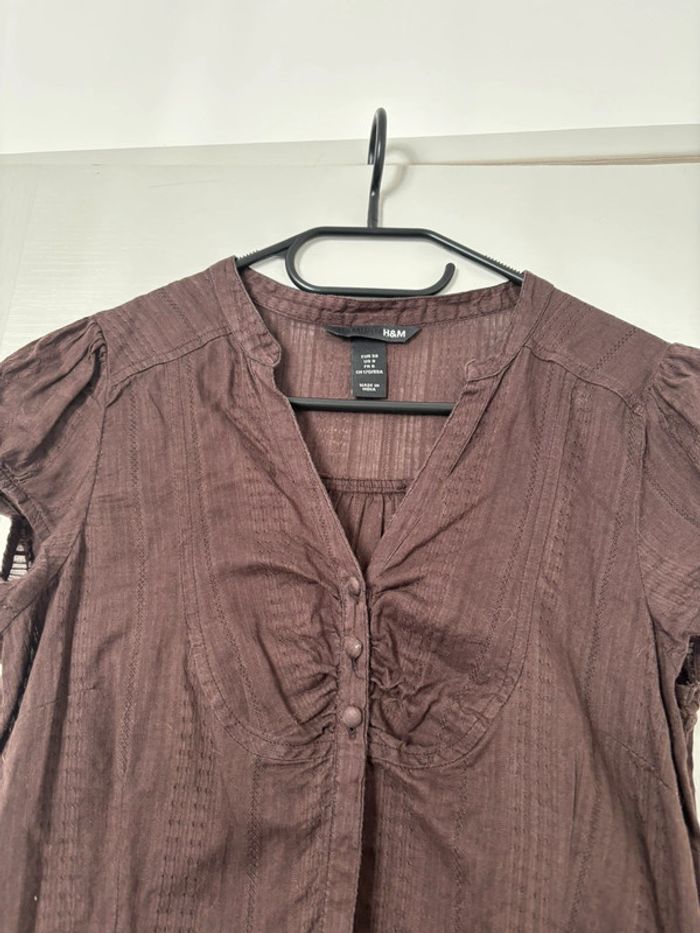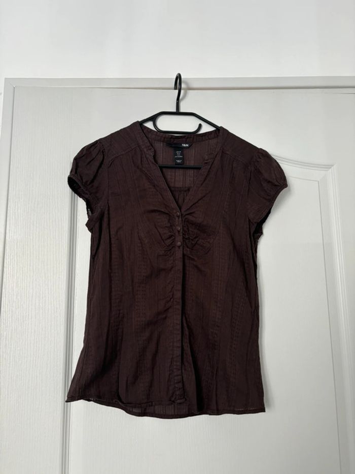 Chemise à manches courtes marron à boutons vintage En lin H&M taille 38 En très bon état