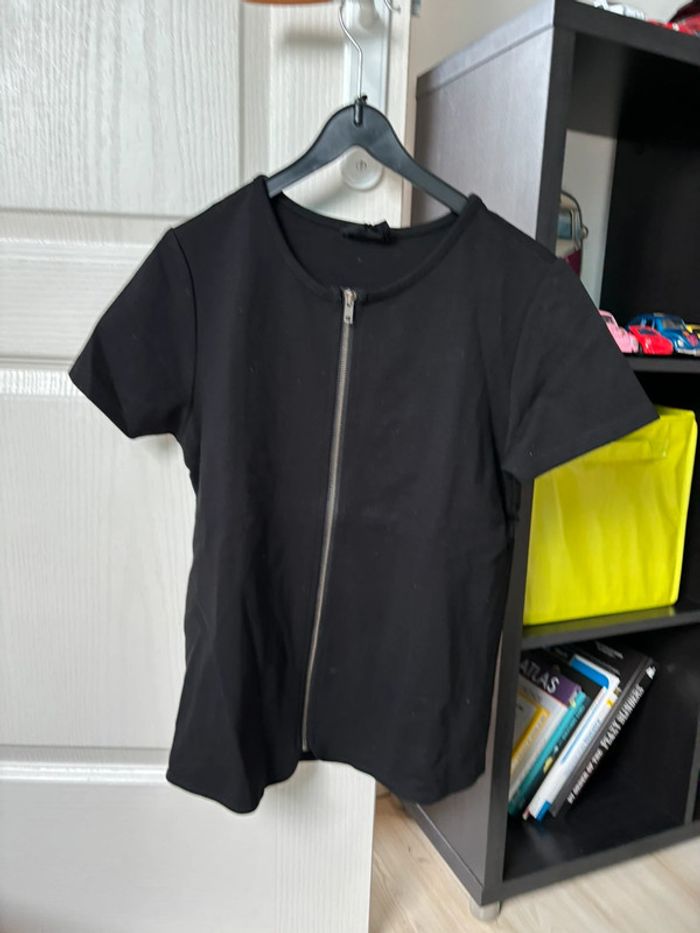 T shirt noir avec fermeture argentée - photo numéro 1