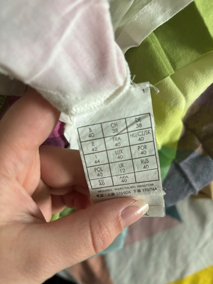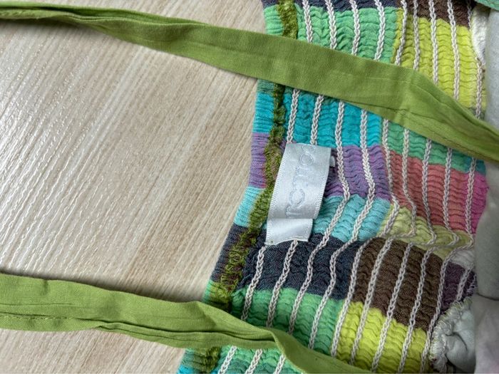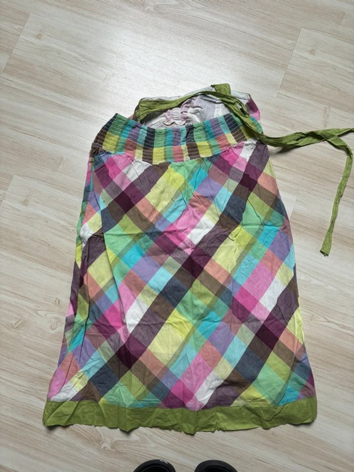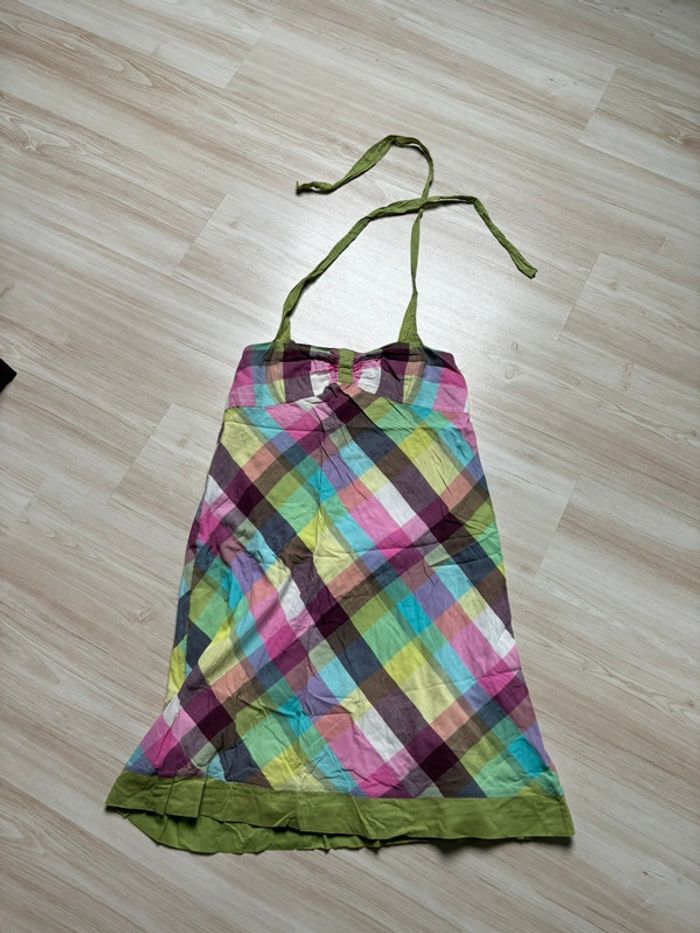 Robe vintage droite motif Vichy coloré Vert jaune rose À nouer dans la nuque Promod taille 40 En très bon état