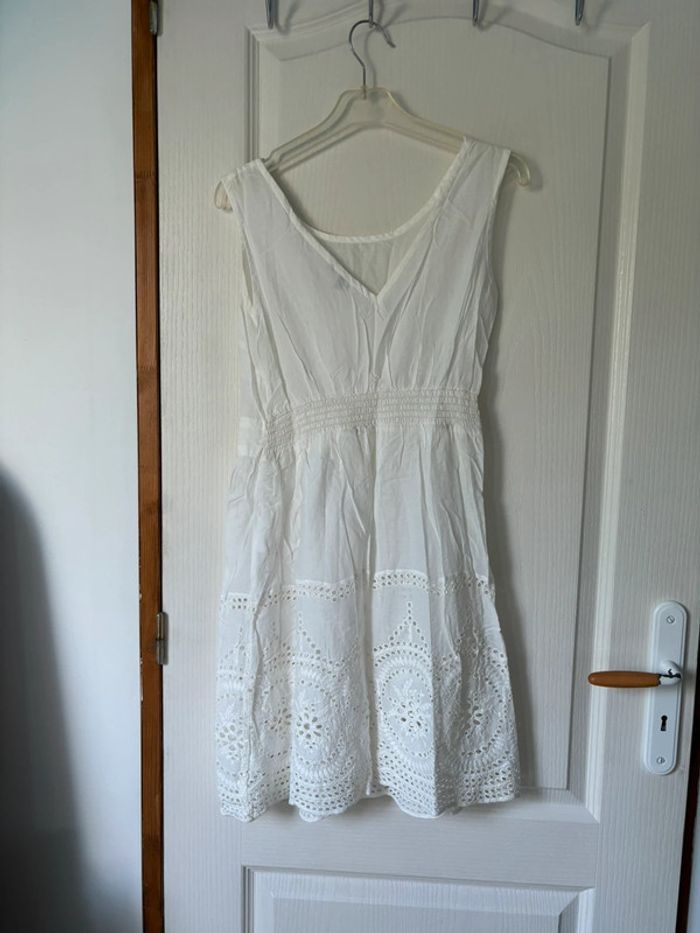 Robe blanche débardeur coupe évasée Avec motifs sur la jupe Étam taille 36 En très bon état