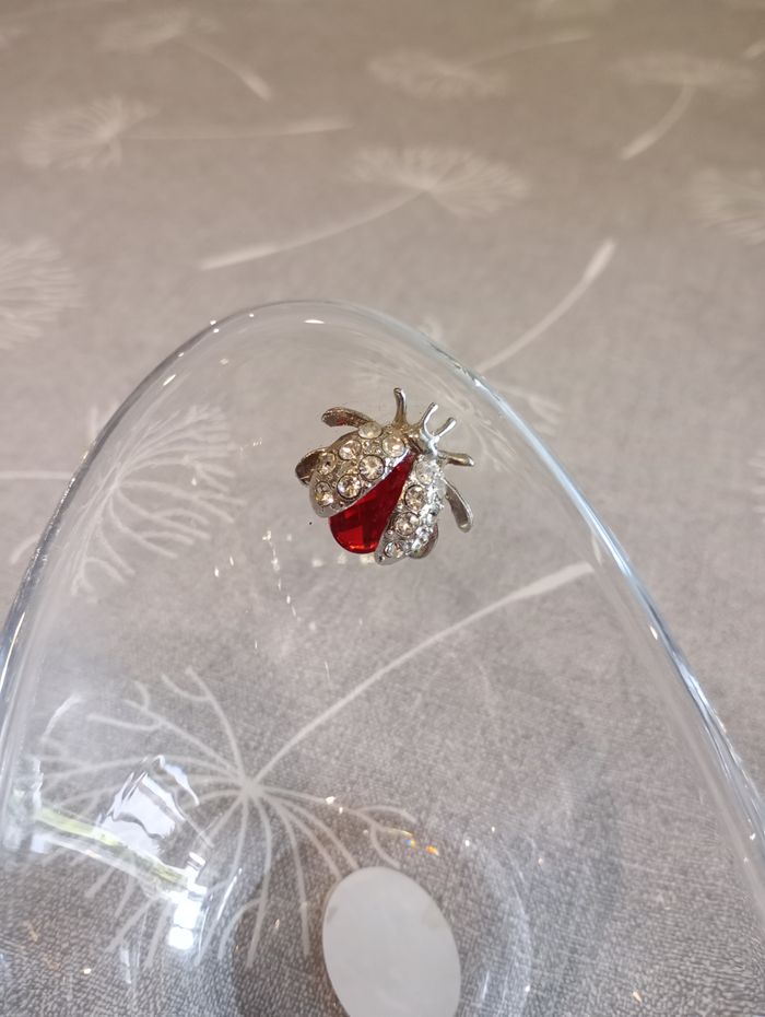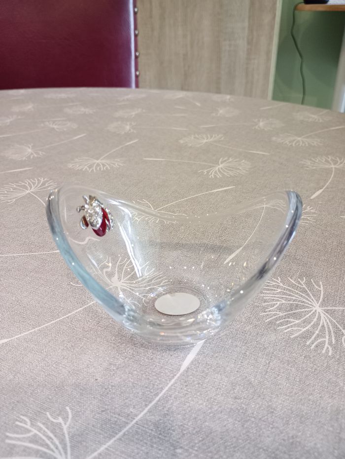 Vide-poche ou coupelle en verre. Insecte gemme rouge et strass. Création de Cer-Art Amorosi en Italie. Dimansion : 10 x 8,5 x 7 cm. Neuf.