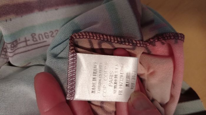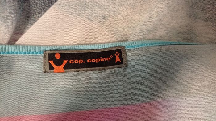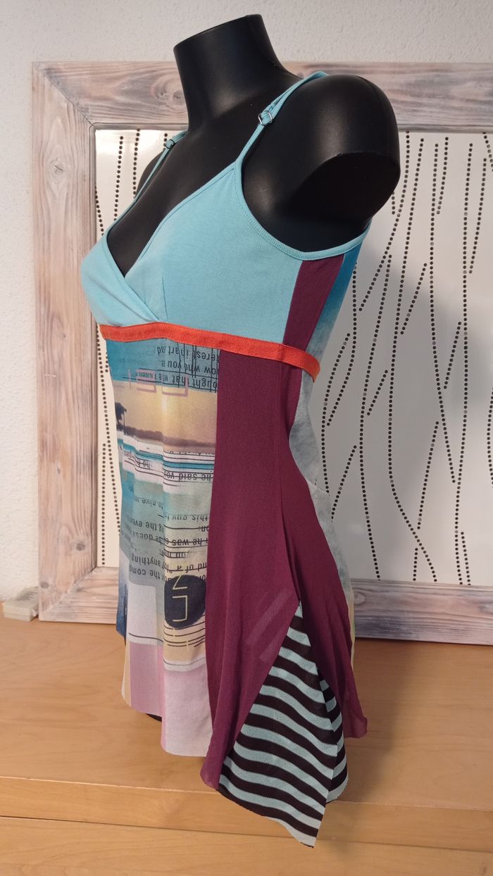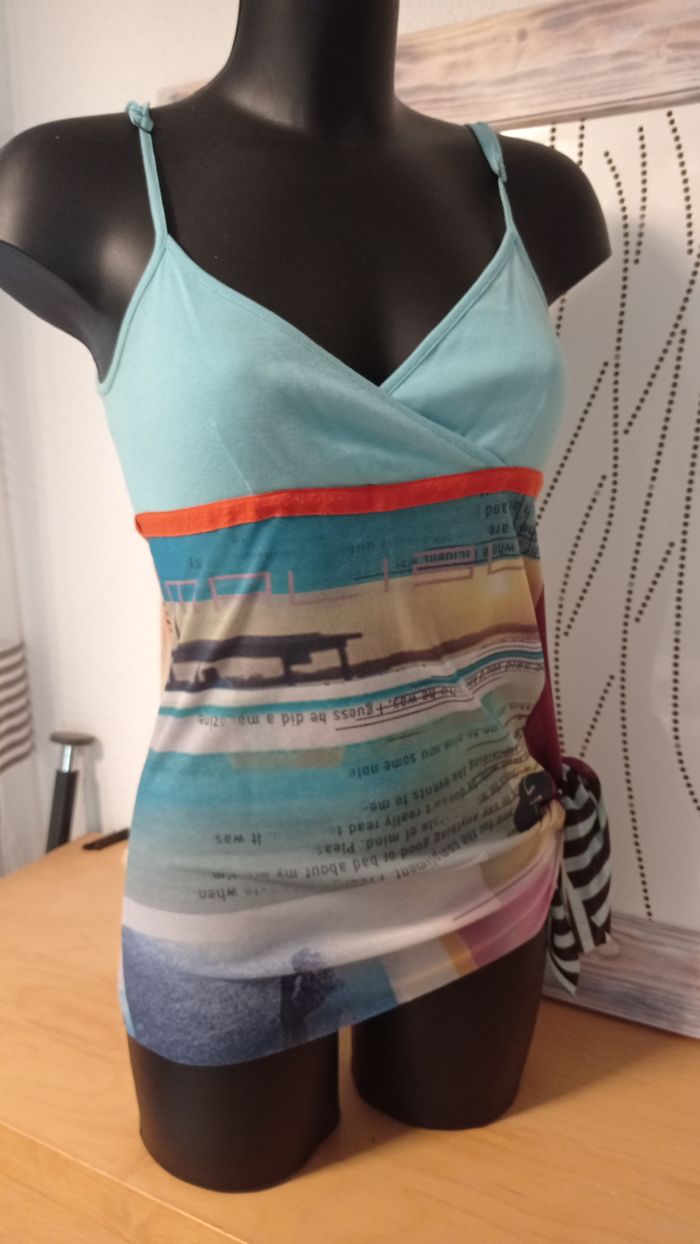 Top résille Cop Copine Mod.Malibu taille 38/40 longueur totale 70 avec les bretelles qui sont reglables polyester/coton peut se nouer sur le coté très bon état tons pastel / multicolore tbe manque l étiquette interieure