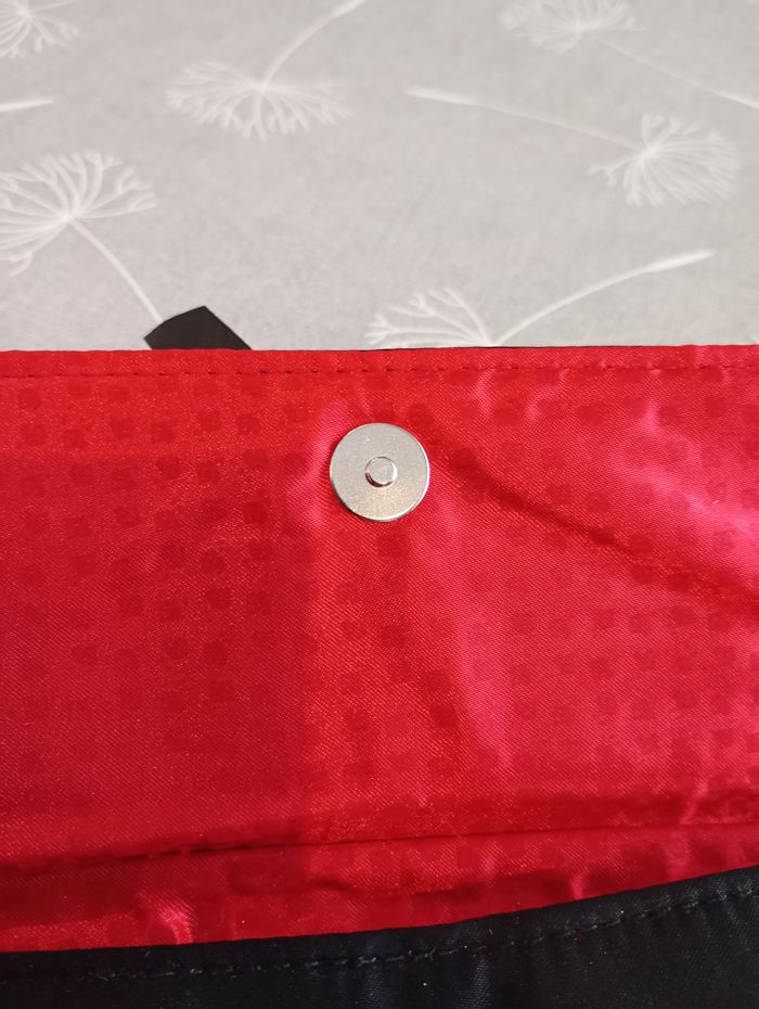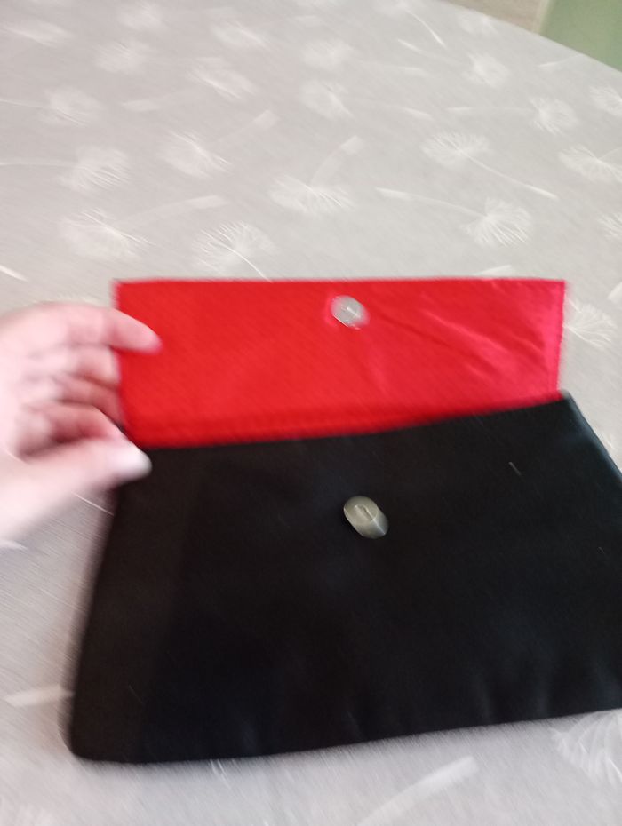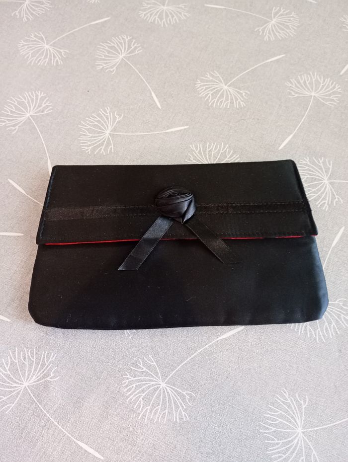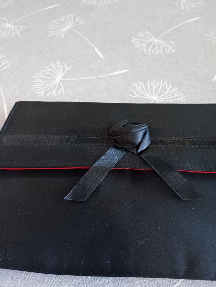 Très belle pochette ou sac de soirée. Noir et rouge. Effet satin. Marque Lancôme. Dimensions : 23 x 14 cm. Neuve.