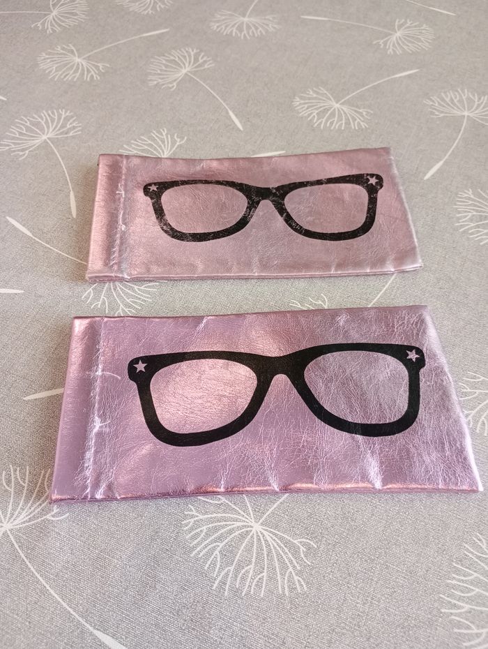 2 étuis à lunettes souples. Rose métallisé. Un en très bon et un en bon état.