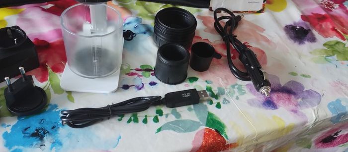 Sa housse et en coque dure couleur noir la machine a expresso et de couleur blanc Avec tous c est accessoires Elle prend le café moulu, dosettes Nespresso, dosettes dolce gusto Avec les câbles électriques pour brancher au prises euro et américain , chargeur voiture et câble USB Service 1 fois acheté 190 euros sa venez de sortir maintenant sur rue du commerce elle est a 177,75€