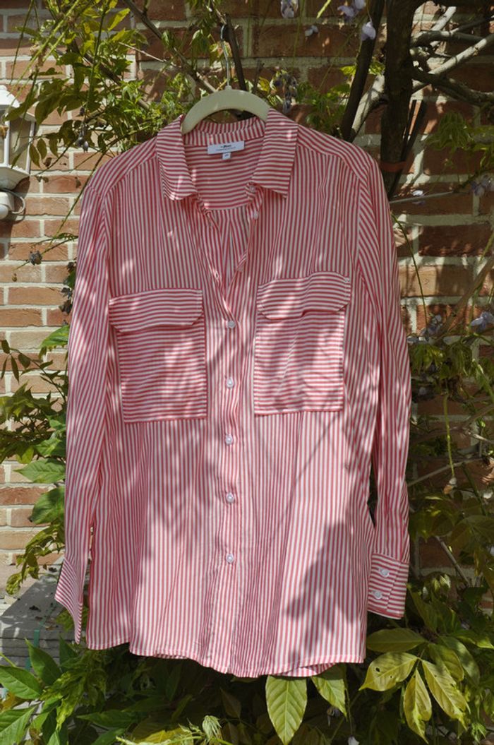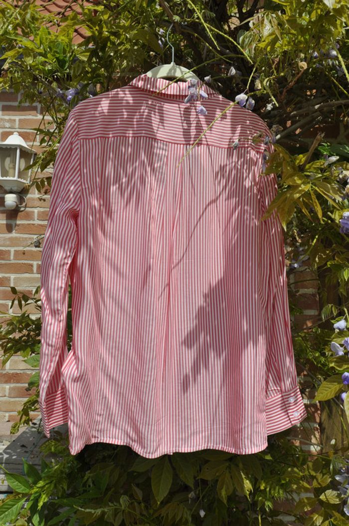 superbe chemisier ligné blanc et rouge avec poches poitrine à rabats, matière douce et fluide 100% viscose taille 34, largeur sous aisselles 48cm, longueur 67cm