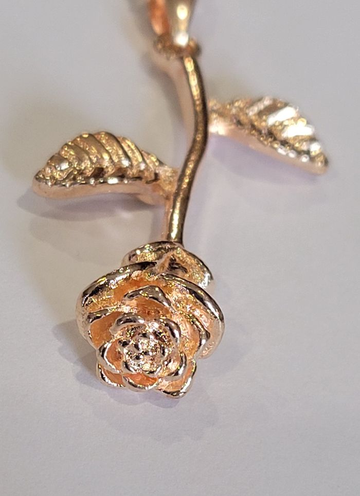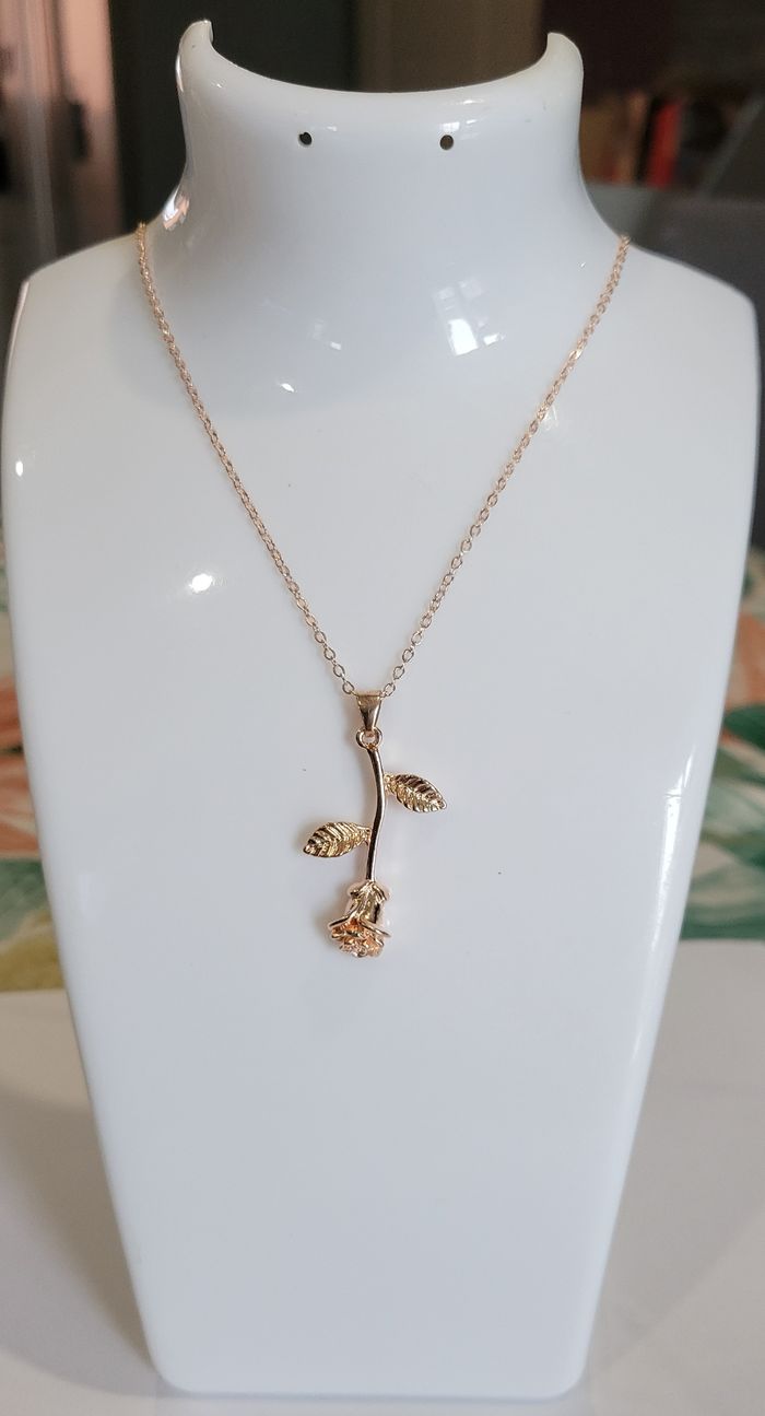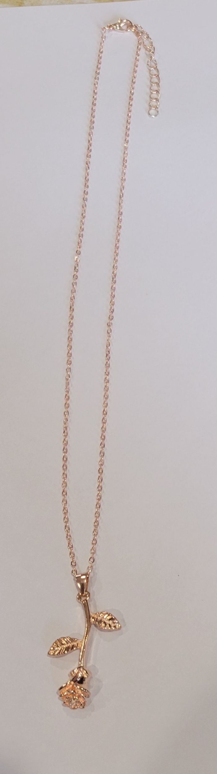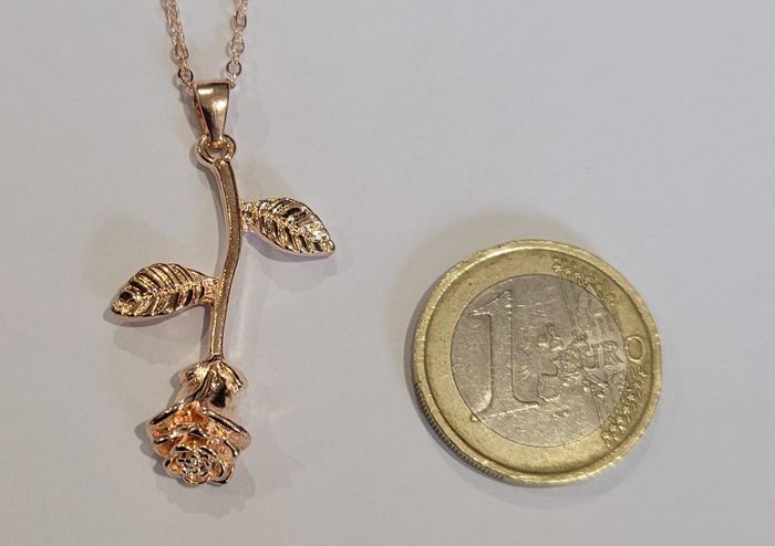 dimensions de la chaine: 44 cms . longueur de la rose : 3 cms. Produit neuf sous emballage. Envoi rapide, soigné .