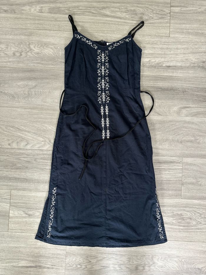 Robe broderies bleue marine et blanche Etam Vintage t40 l - photo numéro 2