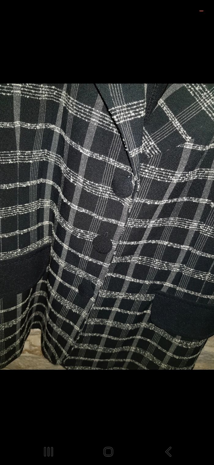 Jolie veste de tailleur noire avec imprimé, fermée par boutons. Avec épaulettes