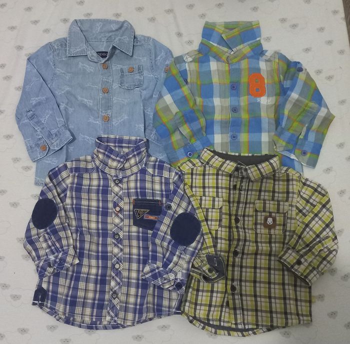 1 Lot de 4 chemises manches longues en très bon état Divers marques , sergent major , obaibi ,babibou in extenso
