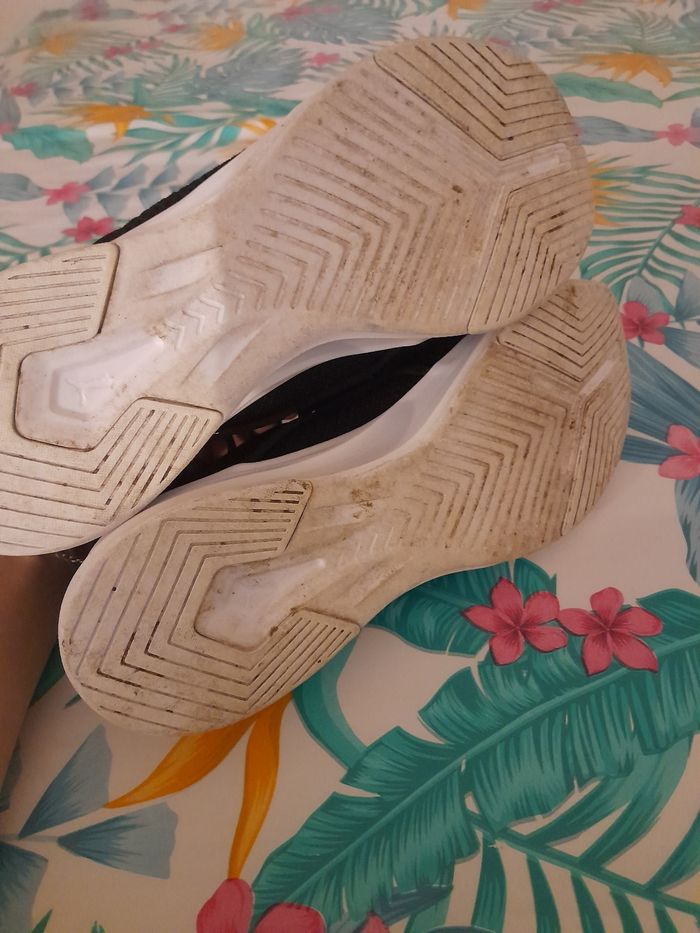 Basket taille 44 Très très peut porter comme neuf elle n'ont pas étais laver pour pas les abîmées. Lacets impeccable