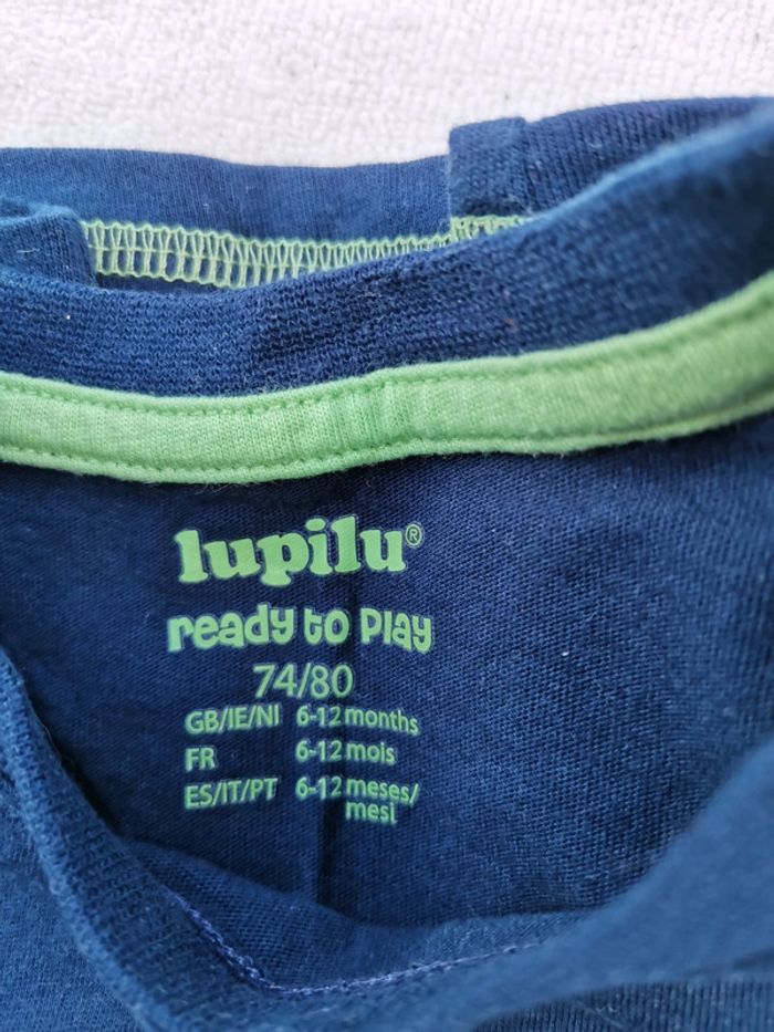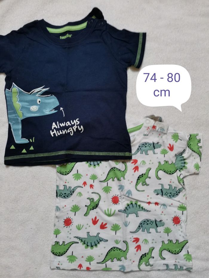 Lot de 2 t shirts manches courtes lupilu 74-80cm. 1 blanc l'autre bleu avec dinosaures. En très bon état. #emilie77127garçon12mois