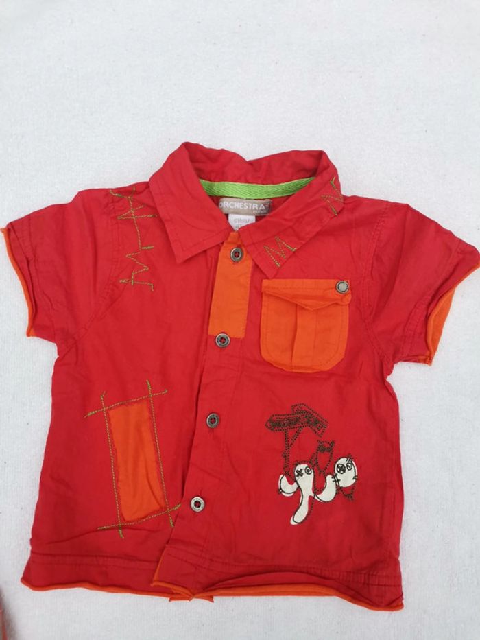 Lot de chemises manches courtes en 6 mois. Légères, Été. 1 tape à l'œil et 1orchestra qui a une petite tache au dos peu visible, voir photos. Possibilité de séparer le lot. #emilie77127garçon6mois