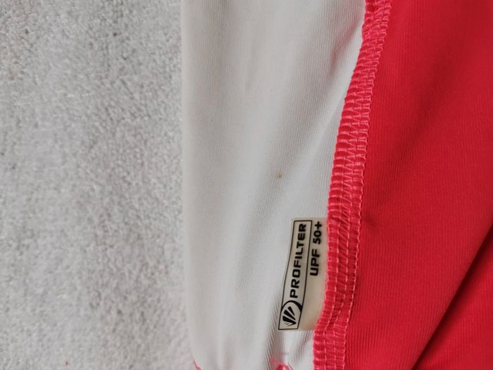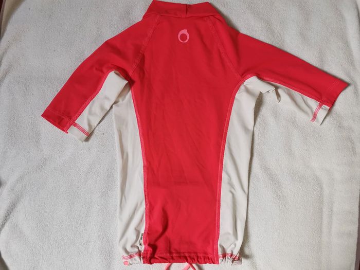 T shirt de bain anti uv de tribord pour fille en 6 ans. Manches courtes. Rose et blanc. Lien pour resserrer à la taille. En très bon état. #emilie77127fille6ans