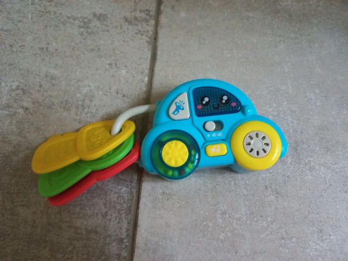 Bruits de klaxon, musiques, petites billes qui font du bruit, clés en silicone avec les chiffres , les lettres, les formes