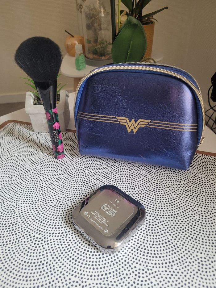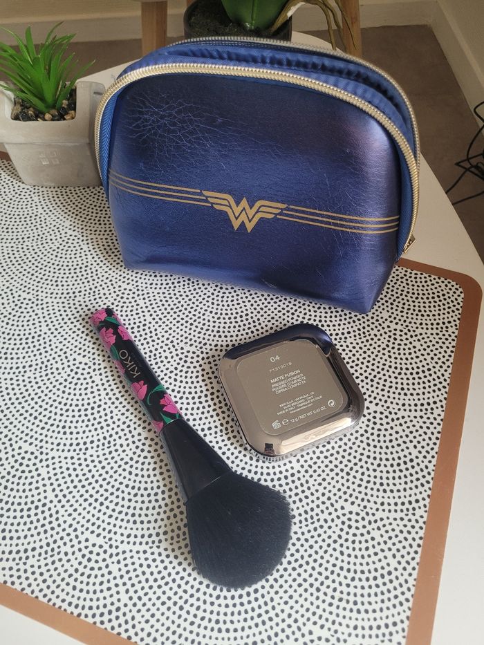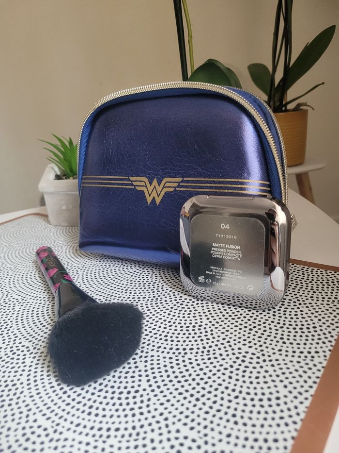 Trousse de maquillage Kiko + Pinceau Kiko Edition limitée ! Poudre compacte beige clair N•4 La Trousse présente des tâches de maquillage* et la poudre essayé 2 fois.