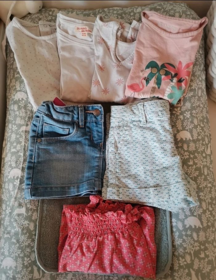 Lot été fille 36 mois composé de : - 4 tee-shirts manches courtes, - 1 jupe, - 1 short, - 1 pantalon léger. En très bon état, plusieurs marques : #kiabi #dupareilaumeme #tex #okaidi