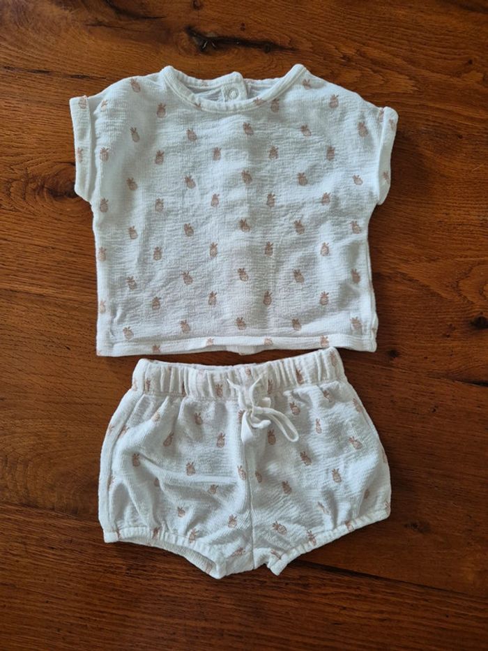 Ensemble léger tee shirt et bloomer kiabi 3 mois ananas - photo numéro 1