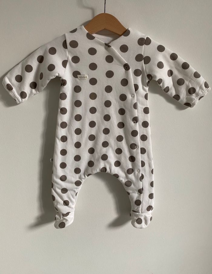 - 1 Surpyjama ou pyjama épais blanc à pois beige de marque Absorba.