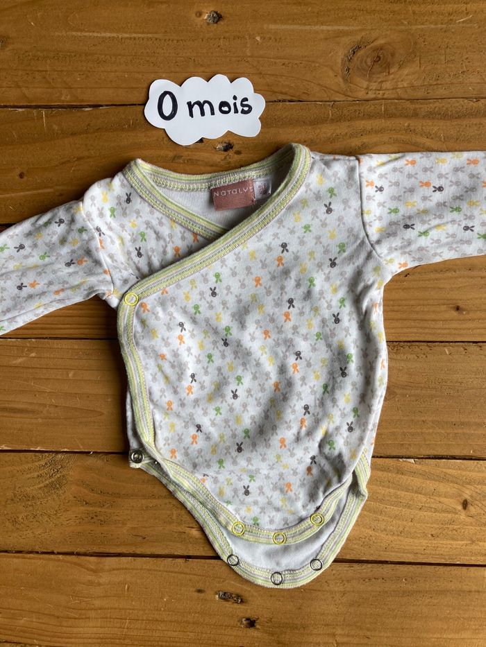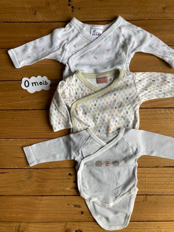 3 bodys manches longues - 50 cm, 0 mois, naissance - Marques Natalys, tex, kiabi - Bon état : portés plusieurs fois, blanc moins blanc, tissu frotté par les lavages. Aucun trou ni tâche #kryptana_zeromois