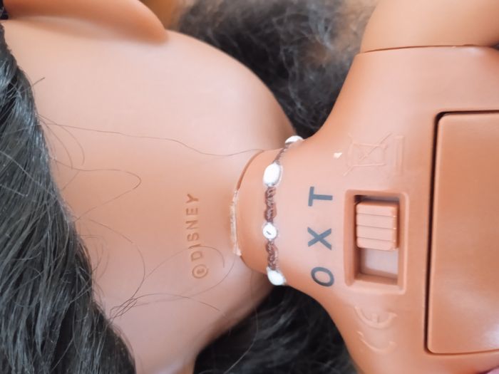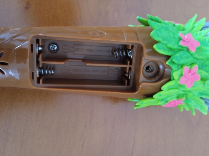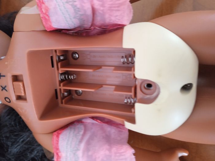 Fonctionne avec 5 piles AAA. 3 dans la poupée et 2 pour le micro. Piles non fournies photos juste pour l'exemple.