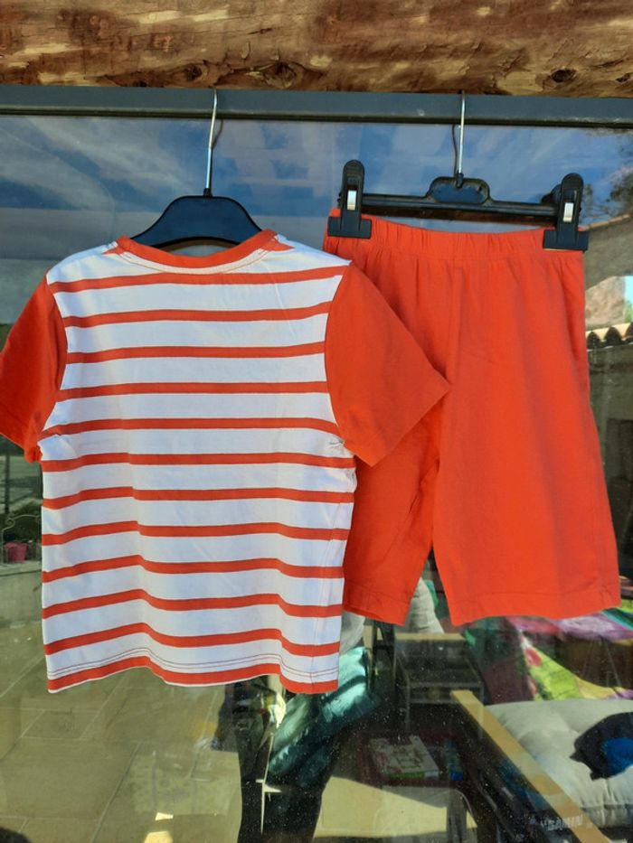 Ensemble short et tee shirt en coton rouge ,motif mexicain, sombrero, maracas, bandana.....