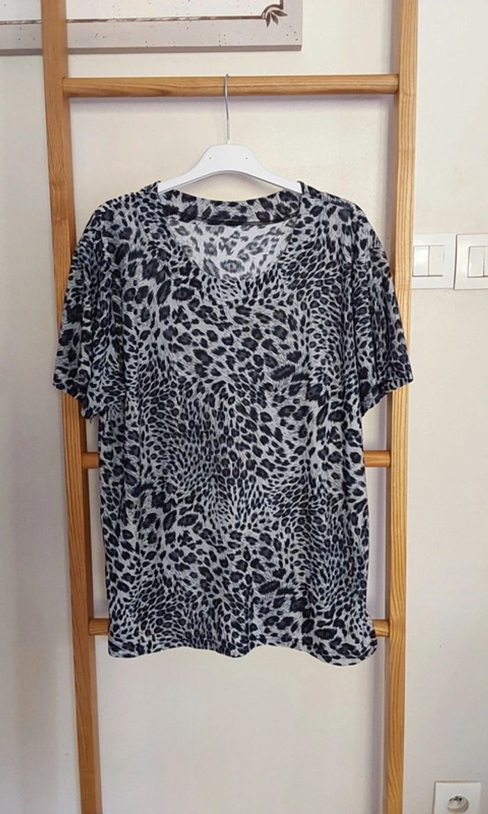 Joli haut blouse fluide en viscose imprimé léopard 🐆 noir et gris - photo numéro 3