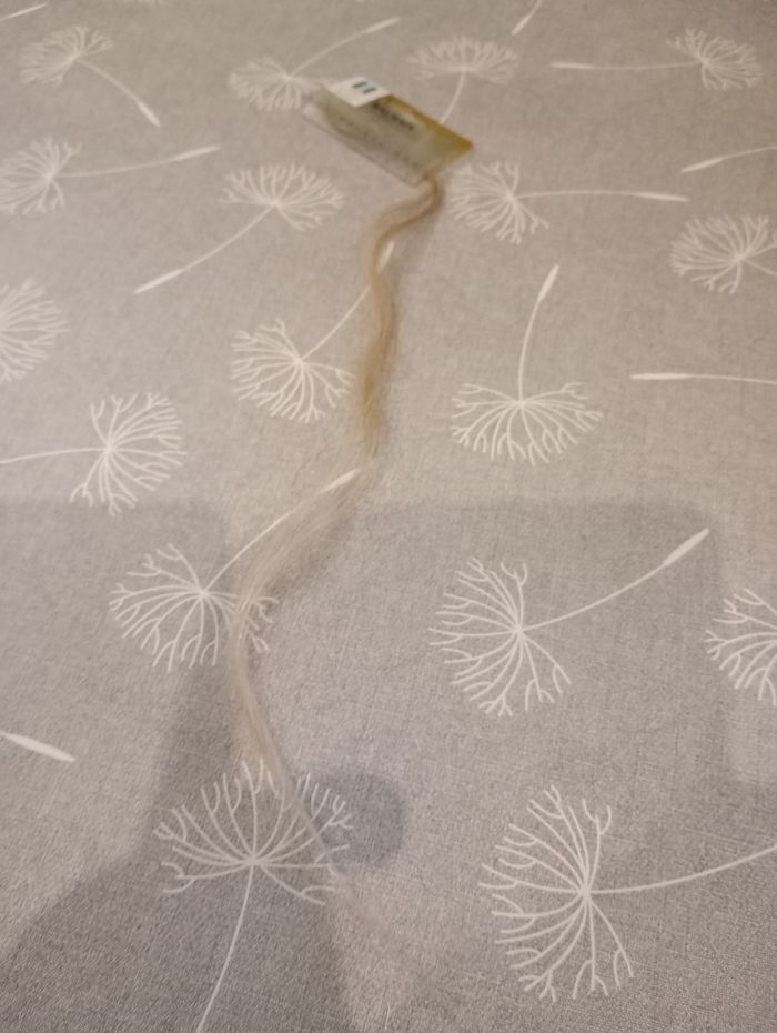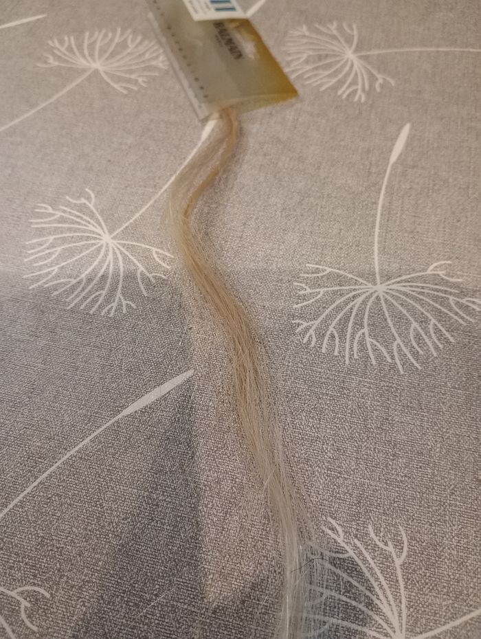 Mèche blonde de la marque Balmain. Longueur : 50 cm. Neuf.