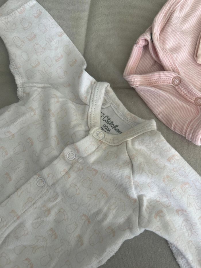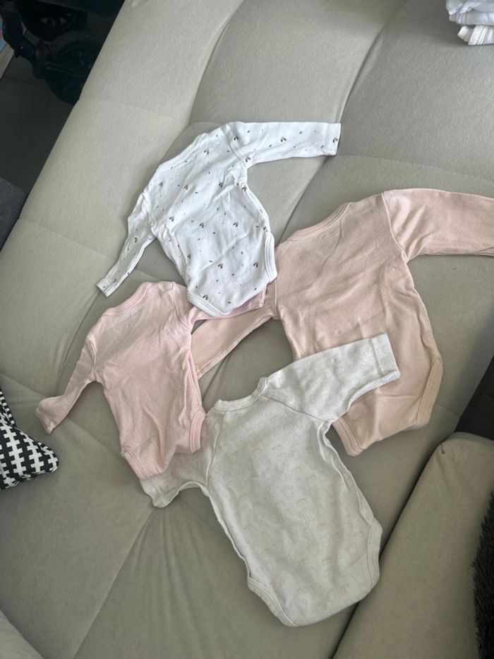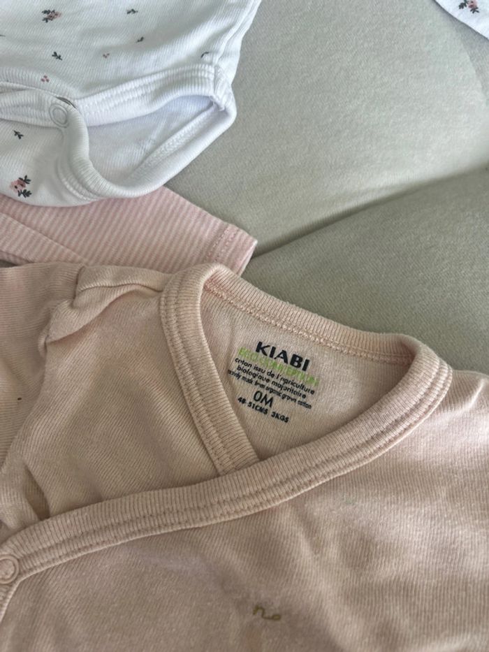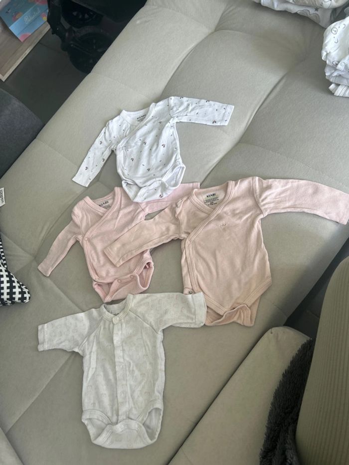 Body taille 0 mois porter une fois . Un body taille 00 mois un peu tachée au niveau du col