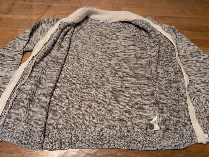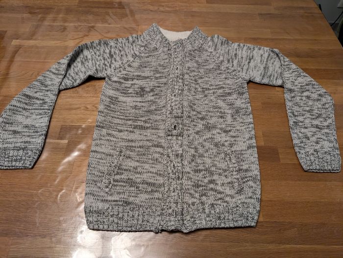 Gilet garçon 12 ans Gémo Très bon état, 100% acrylique, blanc et gris pour un rendu gris clair, fermeture éclair et/ou boutons.
