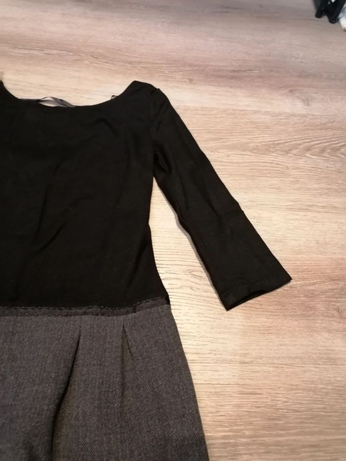 Bonjour, je vends cette robe manches 3/4 noire et grise de la marque naf naf taille 34 en très bon état. Lavé maison non fumeur.