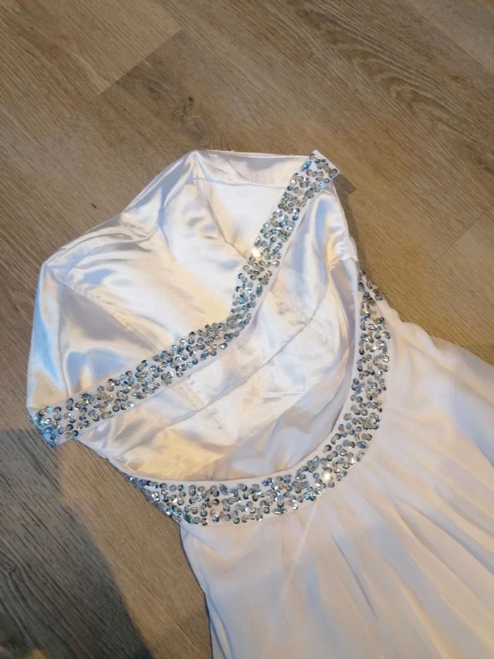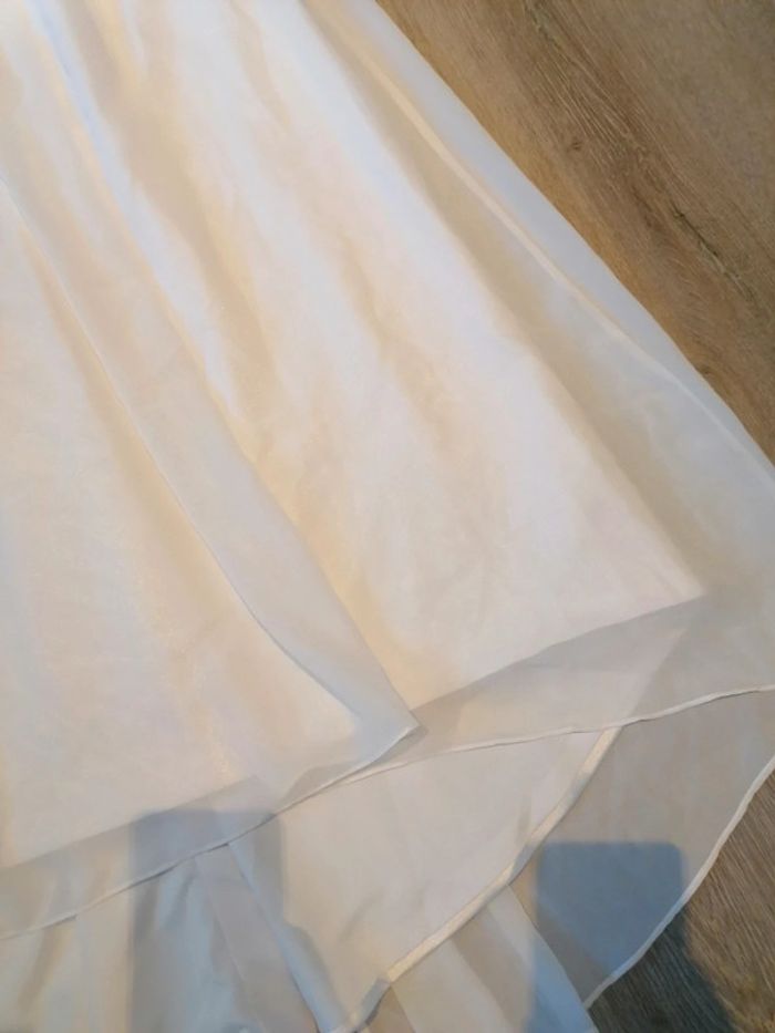 Bonjour, je vends cette robe bustier blanche achetée pour un mariage (mariée) mais jamais portée taille S. Parfait état.