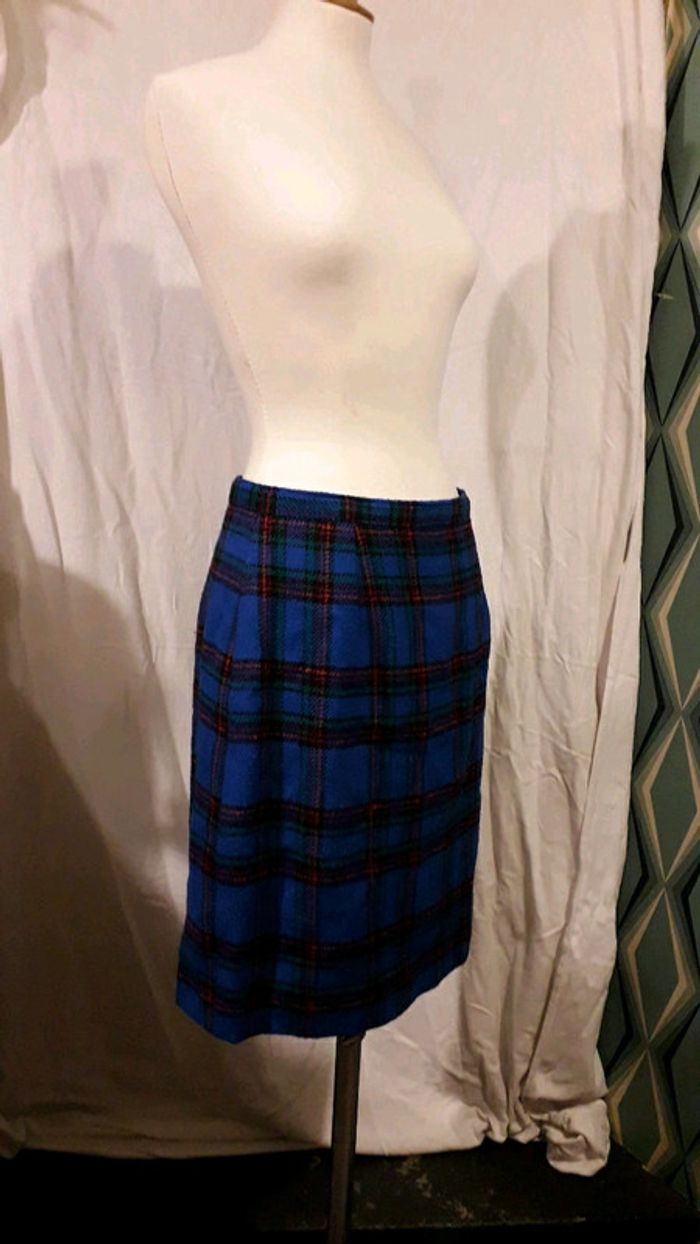 Jupe vintage écossaise Coupe droite, cintrée à la.taille Fermeture sur l arrière Pas de marque Mesure taille 37 cm Hauteur 55 cm Mi longue