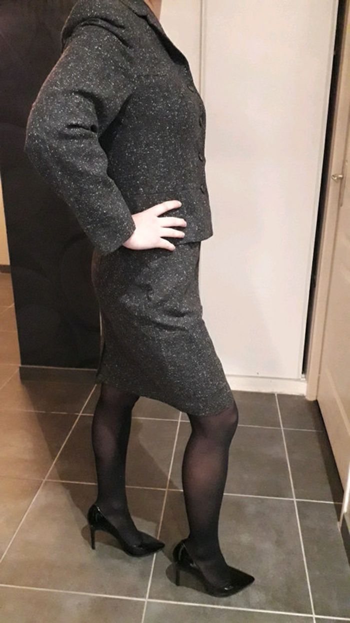 Jupe droite, cintrée, fermeture arrière et fendue dans le bas