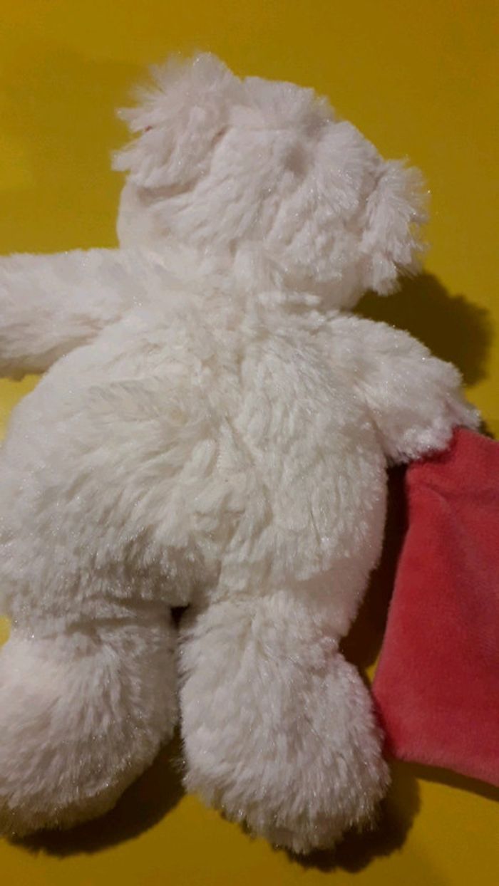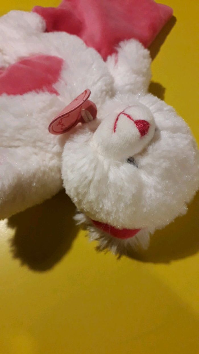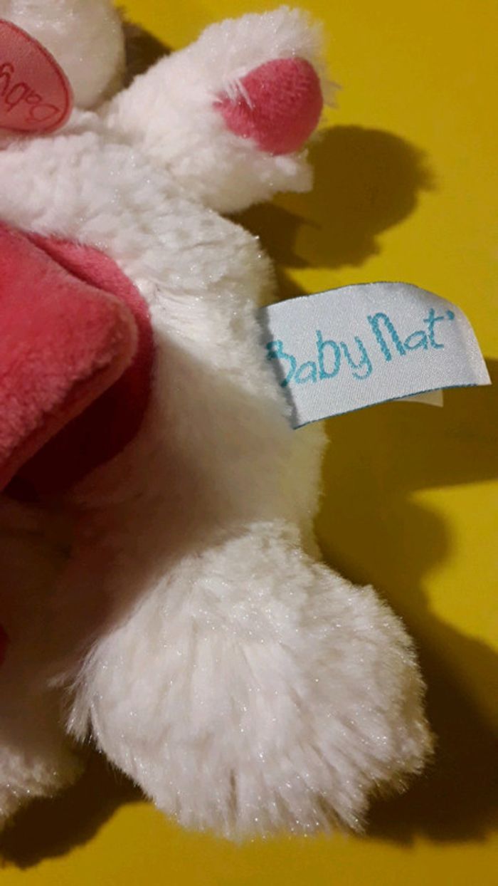 Doudou baby nat Blanc et rose Forme nounours ours ourson Avec petit doudou plat Tout doux Super état Envoi par la poste mais m.r possible