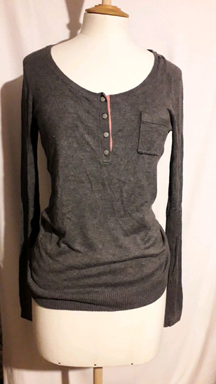 Pull léger gris nafnaf en super état, très peu porté Taille indiquée xs...mais pour s cest ok !